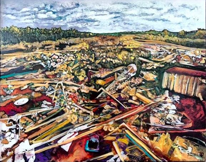 Luis: En eso hay un trasfondo social, político, humano y medioambientalista, pero por sobre todo hay un discurso que tiene que ver con la pintura académica, en donde yo desarticulo el lenguaje académico de pintar. Y también en una propuesta pictórica única que desidealiza el contexto contemporáneo de la pintura de paisaje de los últimos 100 años en Chile. Yo quería pintar el paisaje tal como yo lo veía, tal como yo tomé la foto y sin miedo. Yo hice que el paisaje se viera bello, y esa basura, que es una fealdad tremenda, se viera bella también. Ahí hay un antagonismo del miedo que tiene el pintor de poner algo desagradable para el ojo.