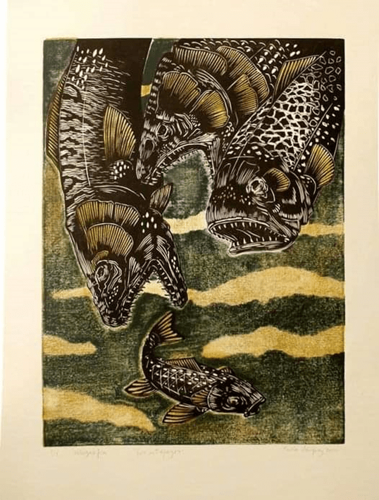 Podría mencionar muchos detalles, cosas elementales del grabado; la fase del tallado de la imagen, las gubias incidiendo la plancha de madera o el sonido característico de pasar el rodillo sobre la tinta, el ácido mordiendo una matriz de cobre, la cualidad visual que se logra con la impresión a diferencia de la pintura o el dibujo directos y por supuesto la satisfacción de obtener una buena estampa, ya sea la que me propuse o la que lo azaroso me sorprenda con un buen resultado final.