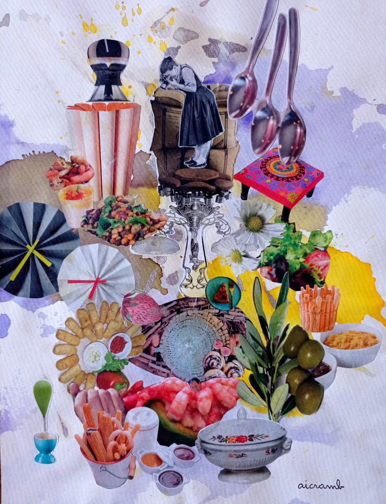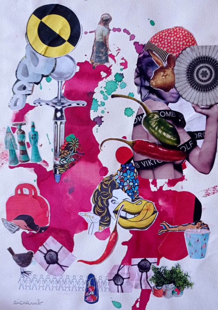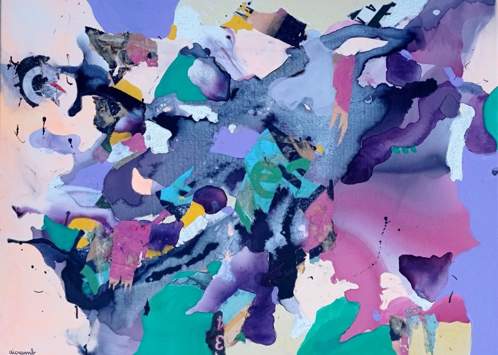 Marcia es licenciada y profesora de artes plásticas en Santiago de Chile y participante activa de APECH (Asociación de pintores y escultores de Chile), y nos presenta estas interesantes obras en técnica mixta, donde mezcla acuarelas y collage análogos sobre papel. En estas obras utiliza distintos materiales dándole un nuevo significado a estos, reutilizando y buscando resultados entre lo figurativo y lo abstracto, permitiéndole al espectador admirar e interpretar.
